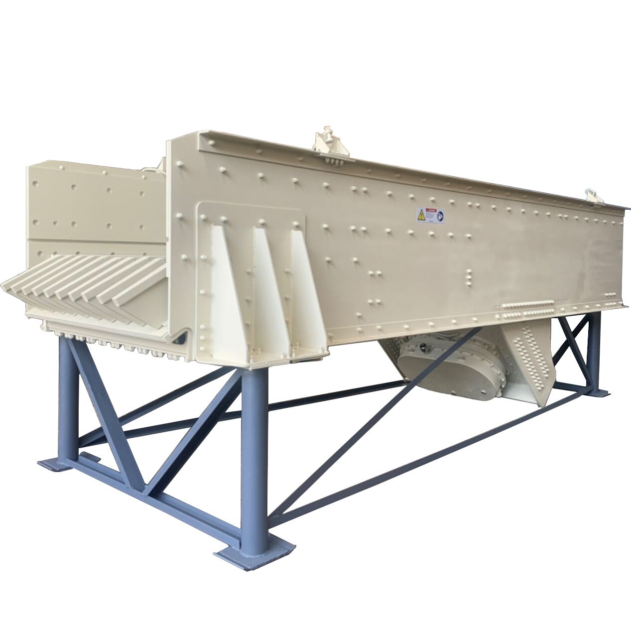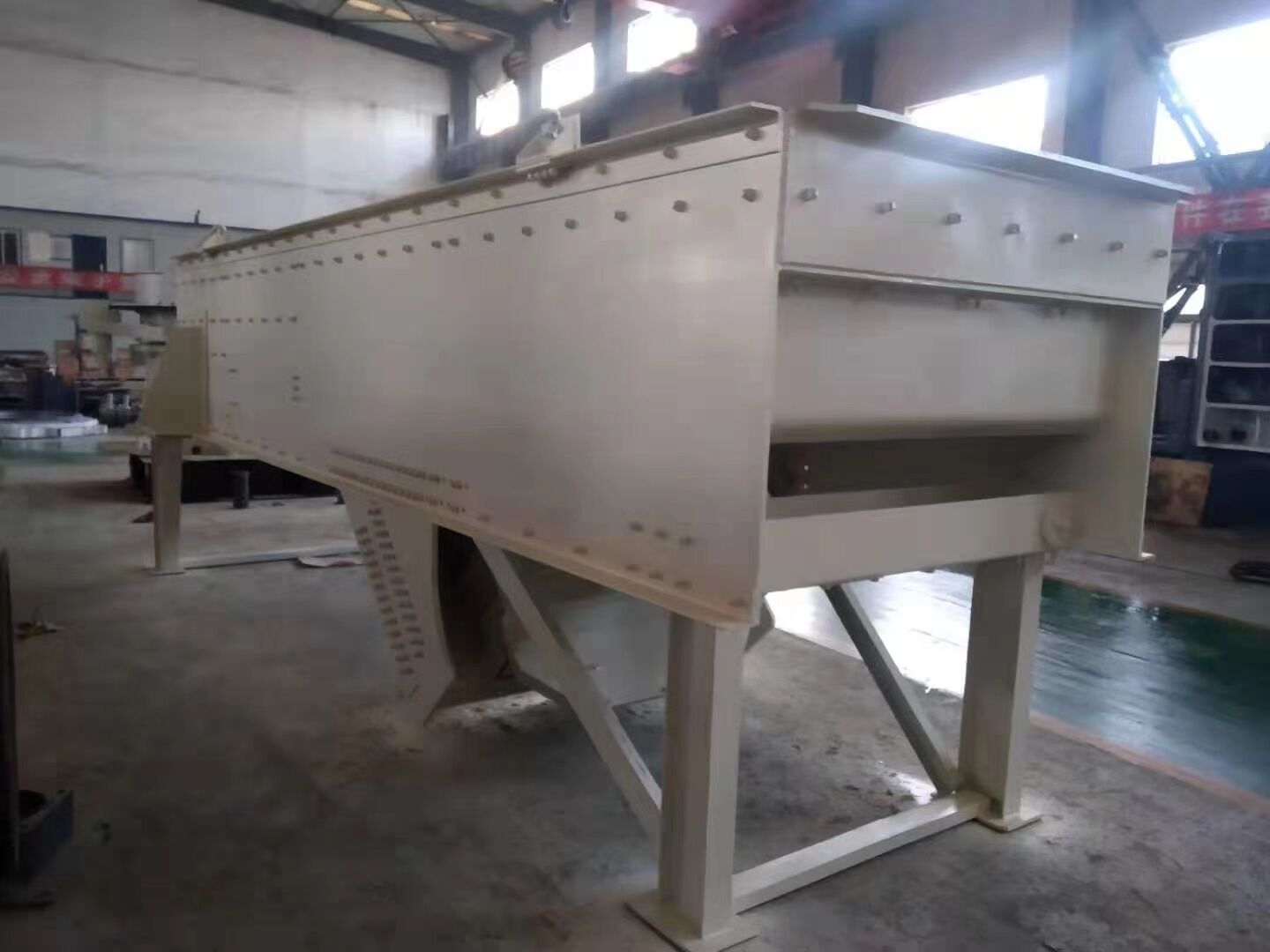 Vibrating screen uses electric exciter as vibrating source, the material will be thrown around the screen, at the same time doing forward sports, in order to achieve the screening purpose. Material from the feeder evenly enters into the machine’s feeding inlet, with multilayer sieves to produce various of products and unqualified products on the screen or under the screen, then discharging from the outlet respectively. It can be used in the automatic production line.